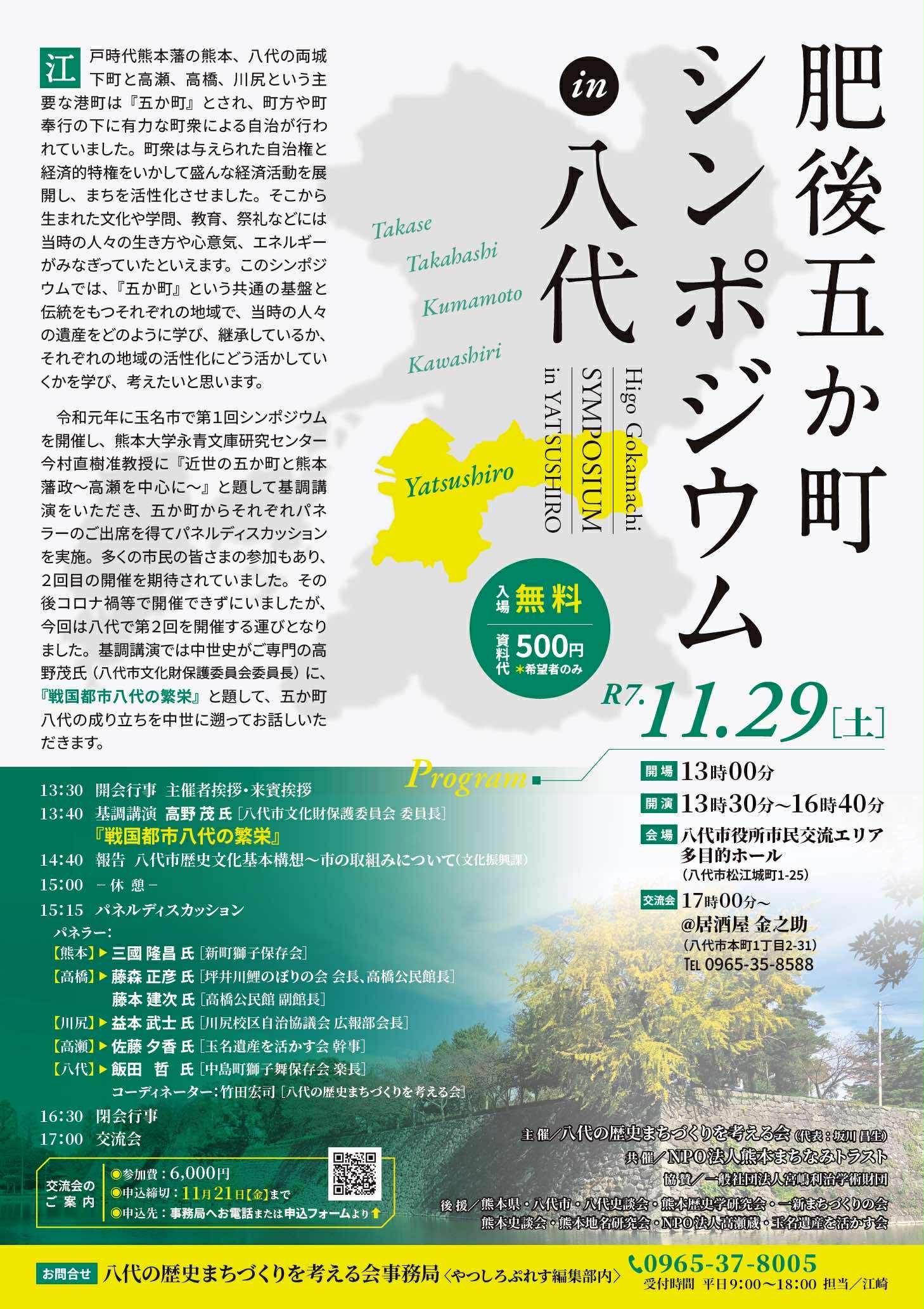 後 援 熊本県・八代市・八代史談会・熊本歴史学研究会・一新まちづくりの会・熊本史談会・熊本地名研究会・NPO法人高瀬蔵・玉名遺産を活かす会